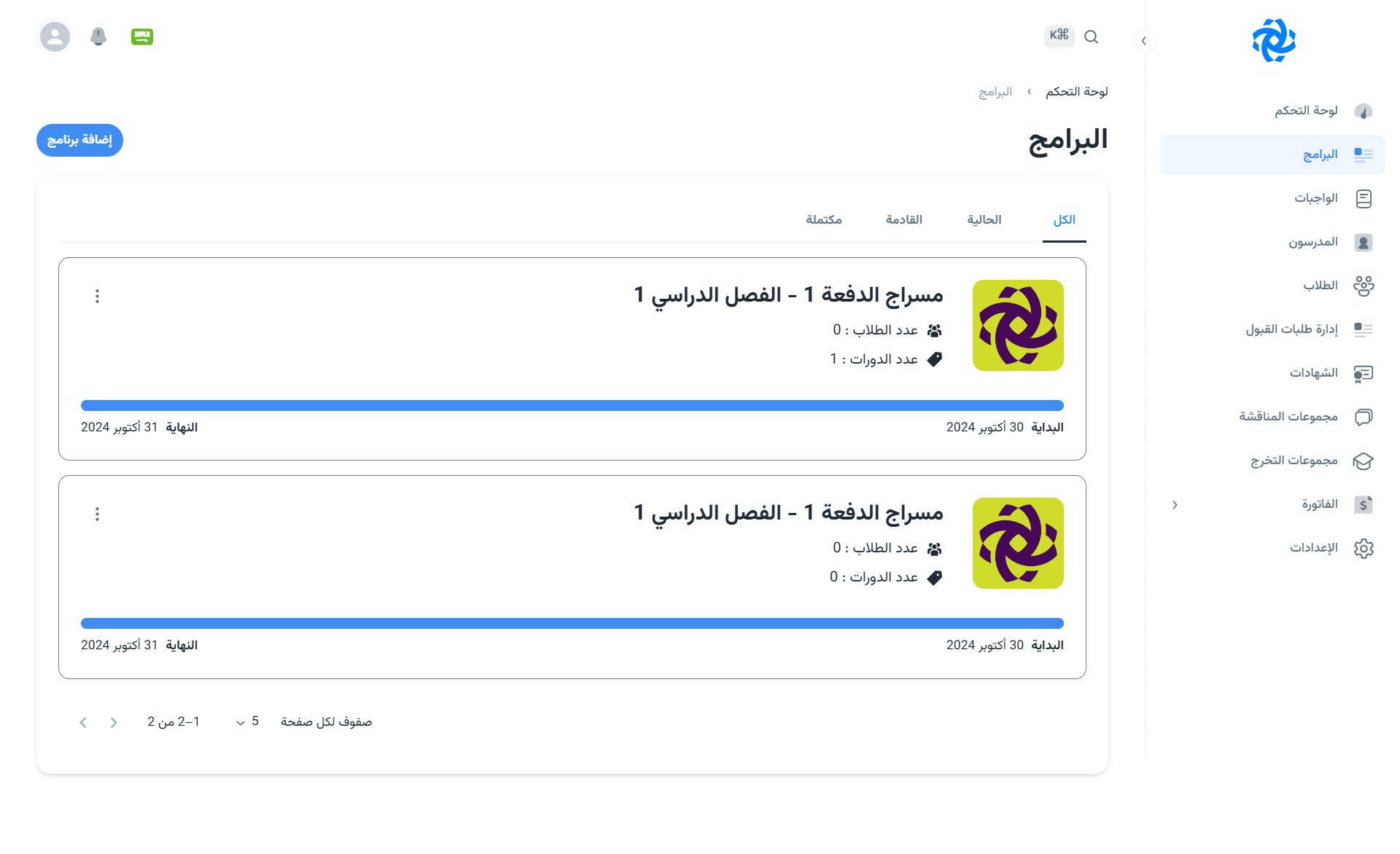 - تعرض البرامج النشطة حالياً