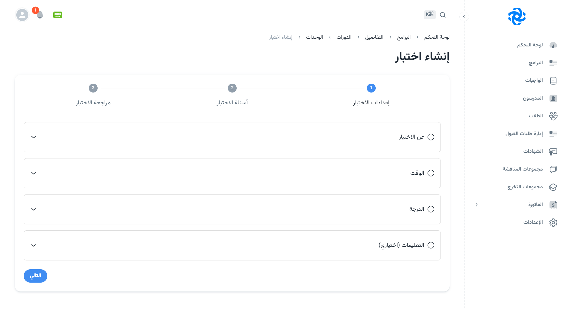 - التقييم: نظام تقييم للطلاب