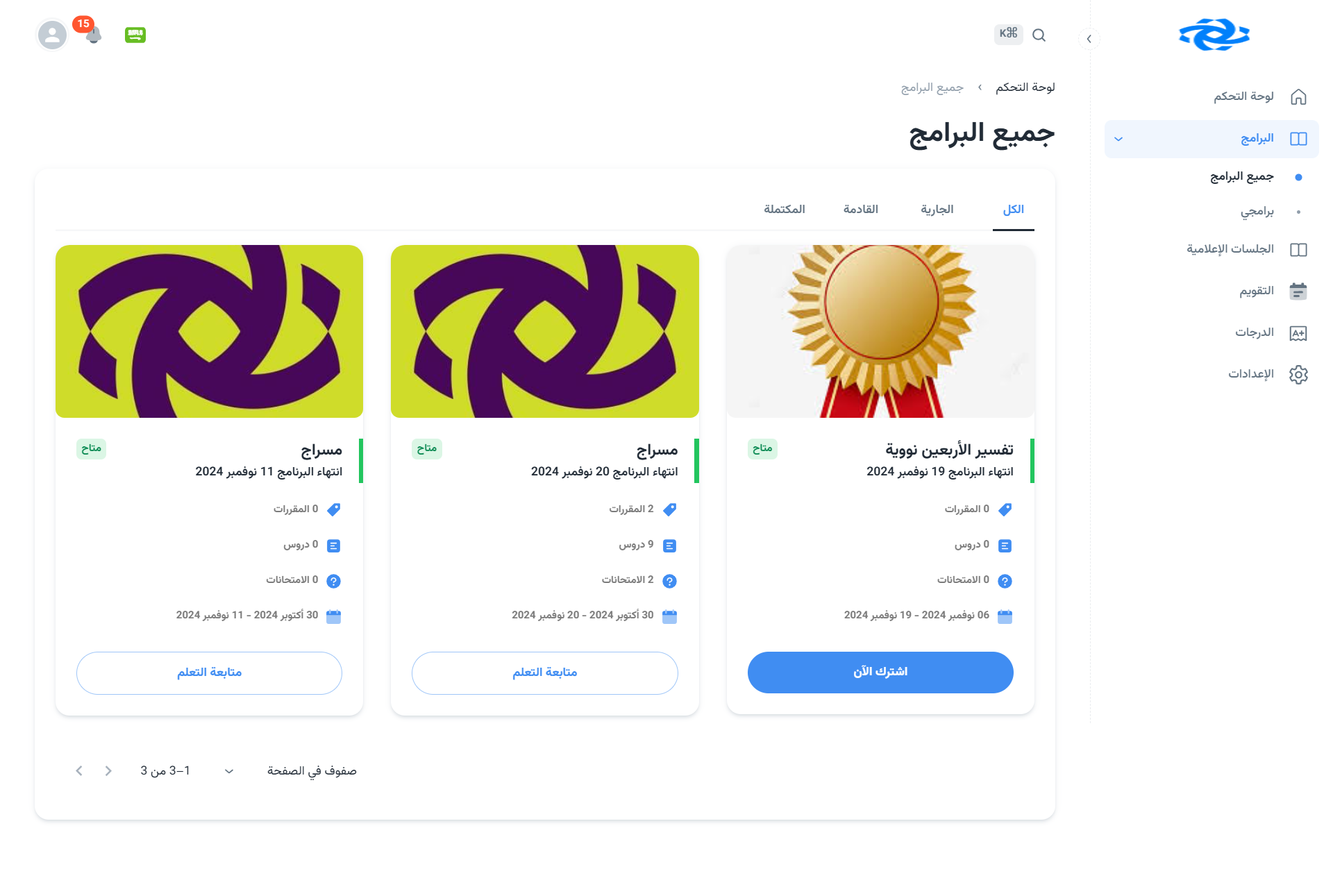البرامج القادمة: البرامج التي لم تبدأ بعد.